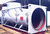 此類膨脹節(jié)的前部(通道端)有兩個工作波紋管,可以吸收來自彎管段產(chǎn)生的橫向位移;后部(平衡端)有一個平衡波紋管,它可以吸收來自直管段的軸向位移.當彎管段產(chǎn)生橫向位移時,大拉桿上球螺母繞球面墊圈轉(zhuǎn)動,同時大拉桿承受內(nèi)壓的推力,因此該膨脹節(jié)常用于泵、罐、壓縮機、汽輪機出口處,以減少對上述設(shè)備的作用力。 四、安裝使用注意事項:
