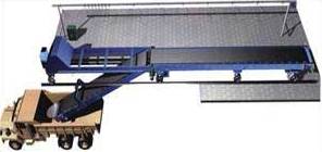 水泥裝車機由平形膠帶機、卸袋機構、端部溜槽等組成。平形膠帶機的支架采用鋼板折彎結構,即美觀又牢固;驅動裝置采用擺線針輪減速機,節(jié)省占地面積;張緊方式為中間垂直卸下時,立式膠帶機處于包裝膠帶機的側邊;當需要水泥袋從中間位置卸下時,由電動推桿拉動立 式膠帶機使其擺動與包裝膠帶機縱向成交叉位置,并開動立式膠帶機即可。立式膠帶機的兩個擺動極限位置限位開關,其在工作和非工作狀態(tài)下的定位由限位開關來實現。特殊設計的溜槽能使水泥袋恰好落到接續(xù)膠帶機的中心位置。